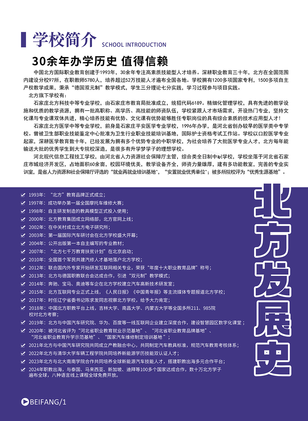 张家口初中毕业生学新能源汽修专业:石家庄北方科技中等专业学校招生简章